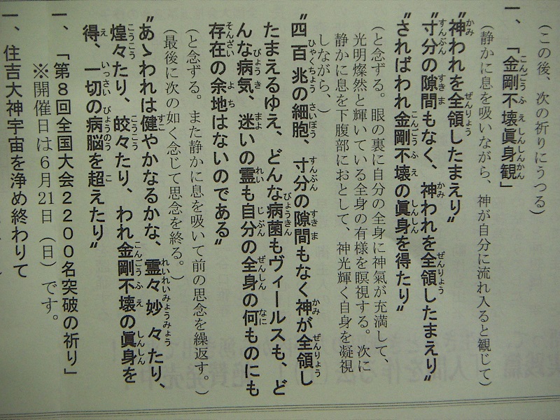 人間は神の子であるから、完全であるほかはないと云う念を強力に、精神集中的に